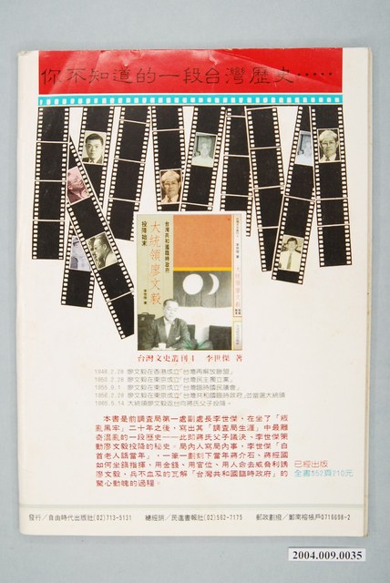 此為自由時代雜誌社1988年12月3日出版的《新聞時代》週刊總號第253號,內容計有〈當家作主要勇氣,民主正義出頭天-聞台獨案判決確定有感〉(鄭南榕)、〈李登輝林洋港全本恩仇錄〉、〈國民黨內的”遠見”人物:司法院長”待價而沽”,林洋港心懷總統府〉(鄭緯)、〈八國聯軍進攻強人總統,李登輝政權進入風暴期《林洋港不甘雌伏,聯合反李勢力進窺總統寶座》〉(鄭經)、〈李登輝難比蔣經國,破船愈補船愈破!李登輝介入立委黨部運作,引發立院滿天砲火〉(楊百淵)、〈郝柏村活兩年才長一歲!他今年到底是幾歲?〉(李天賜)、〈台灣用武器援助中南美獨裁國家〉(譯自珍氏防衛周刊)、〈三商銀是內線交易者的專利,剖析三商銀增資案內幕〉(慕容霜)、〈為什麼要統一?莫名其妙!《解放月報專訪倪匡之摘錄》〉、〈國民黨在統獨論爭中最嚴重的錯誤-評蔡許台獨案之判刑確定〉(陳芳明)、〈世台會告海外鄉親書,籲請支持「新國家運動」〉(李憲榮)、〈既要人又要錢還要做市長,民進黨市議員提案調查台中市長張子源〉(張啟斌)、〈瓦解台灣共和國臨時政府的--”大統領廖文毅投降始末”自序〉(李世傑)等。 此物件為鄭南榕所創辦的《自由時代》系列雜誌之一。由於意識到出版審查之嚴峻,鄭南榕在刊物創辦之初便註冊了為數眾多的「時代」系列標題,以免後續因遭查禁而無法準時出刊,另《自由時代》為保護相關供稿者,鄭南榕主動承擔《自由時代》一切文責,且不在雜誌目錄頁著錄個別作者姓名。《自由時代》標榜著「爭取百分之百的言論自由」,致力於追蹤黨國內幕、打破禁忌話題,也籌劃街頭社會運動――如「五一九綠色行動」。《自由時代》訴求黨外組黨,在民主進步黨成立後則主張群眾路線,對於較保守的公職路線則加以批判。 「黨外」一詞主要為非中國國民黨的臺灣政治勢力,而「黨外」政治勢力,主要的宣傳方式為「黨外雜誌」,「黨外雜誌」最早如1950年代的《自由中國》、1970年代的《大學》、《臺灣政論》,後在1980年代「黨外雜誌」發展蓬勃,代表刊物為《八十年代》與《美麗島》,最終,這股媒體趨勢在1986年民進黨成立、1987年解除戒嚴之後逐漸式微。「黨外雜誌」在當時激起了臺灣民眾的民主意識,也逐步促成了言論自由開放。(蕭淑玲,2006,153-155)。