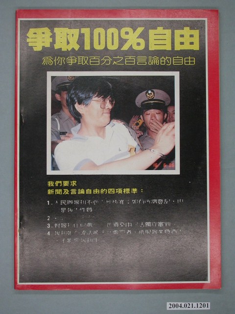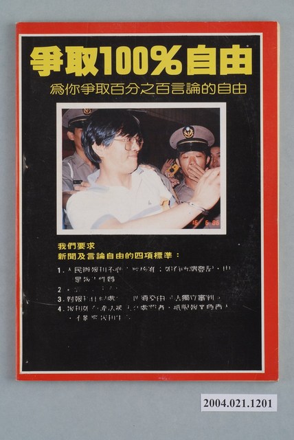 此為一紙質雜誌,此物件以照片為封面,並以白色字體標示物件之名稱,本物件為1987年1月發行之《開拓時代》週刊第28、29期合訂(自由時代系列總號第156、157號),封面內容計有〈姚嘉文回來了〉、〈胡耀邦為何下台?〉、〈從「自絕」到「自決」――我們需要更大的選擇空間〉、〈江南著「蔣經國傳」的藍本――曹聚仁:蔣經國論〉等。目錄計有〈丁大衛使台背後「山地少女也是我們的同胞!」――關懷雛妓座談會記實〉、(一)自由談、(1)國民黨增額立委的輓歌――從蕭瑞徵被刺身亡談起、(二)新黨之頁、(1)山頭橫阻民生路――民進黨中央與立委黨團暗中較勁、(2)不罷又如何?――民進黨的黨紀考驗、(3)民進黨的「海外組織」的歸化問題、(三)天下傳真、(1)馬尼拉最寒冷的冬天――柯拉蓉的舊愁新患、(四)替國民黨看風水、(1)慈湖龍穴之謎、(五)萬能記者阿吉仔、(1)禁舊恨解新仇,國民黨往下流、(六)特別推薦、(1)蔣經國論、(1.1)歸來、(1.2)熊是輝伸出手來了、(1.3)頂石臼做戲、(1.4)泰和的看法、(1.5)父子之間、(1.6)阿契理司的腳跟、(1.7)從舊贛南到新贛南、(1.8)第一個三年計畫、(1.9)哈姆萊脫在中國、(1.10)重慶向他在招手、(1.11)蔣氏父子與史太林、(1.12)勝利之夢、(1.13)在那黯淡的日子裡、(1.14)一個熱鬧的夏天、(1.15)副總統之爭、(1.16)一木難支大廈、(1.17)武松碰上了西門慶、(1.18)杜那刻傻子及魔鬼、(1.19)溪口的春天、(1.20)杭州會議、(1.21)從烏江到垓下、(1.22)一夕話 等。 此物件為《自由時代》系列雜誌之一,《自由時代》是黨外政論雜誌之一,於1984年3月12日由鄭南榕所創辦,並且標榜「爭取百分之百的言論自由」,雜誌內容致力於追蹤黨國內幕、打破禁忌話題、評議時政,同時也籌劃街頭社會運動,如:「五一九綠色行動」,其中鄭南榕為保護幫《自由時代》雜誌撰寫文章的作者,於是在目錄標示鄭南榕承擔一切文章的責任,且不在雜誌目錄頁寫上作者姓名。最終在1989年11月11日,鄭南榕自焚身亡7個月後,《自由時代》停刊。所謂「黨外」為中國國民黨之外的政治勢力,「黨外」在國民黨政府的治下運用創辦雜誌的方式表達立場、對抗國民黨政府,這些雜誌、出版品被稱為「黨外雜誌」,《自由時代》亦是其中之一。