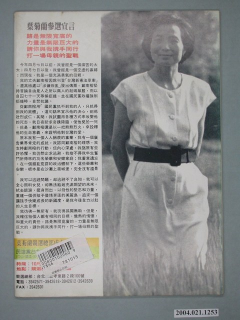 此為一紙質雜誌,此物件以照片為封面,並以白色字體標示物件之名稱,本物件為1989年9月發行之《自由時代》週刊(自由時代總號第296期),封面內容計有〈走路縣長偷渡回台――許信良返臺被捕――不定時炸彈,終於引爆了〉、〈李登輝的母校稱他為臺灣共和國總統〉、〈郝柏村、李煥利用關說案聯手奪權,李登輝束手無策〉、〈李登輝宴請王惕吾示好求和〉、〈李煥在槍口下救回余紀忠一命〉、〈警方說:余登發是爽死的,楊日松是老糊塗〉等。目錄計有(一)時代觀點、(1)讓臺灣人失望的「臺灣人總統」、(二)封面故事、(1)走路縣長偷渡回台――許信良返臺被捕、(1.1)專訪李煥:對,許信良回來了、(1.2)黃信介談聲援許信良、(2)許信良――不定時炸彈終於引爆了、(三)政治氣象台、(1)統一的時間表消失了――如何正確解讀中國領導人的統一訊息、(2)美國康乃爾大學稱呼李登輝是臺灣共和國總統、(四)特別報導、(1)郝柏村、李煥利用關說案造勢,李登輝束手無策、(1.1)余紀忠為何替李煥賣命?、(1.2)風「蕭蕭」兮,蘇志誠「閉嘴」、(2)雙李各自部署,準備大對決、(3)「曾俊義根本沒有說他請蕭天讚關說」――專訪曾俊義的律師曾宗廷、(3.1)調查局肅貪處是軍人干政的槍桿子、(4)「順水人情」辦蕭案,「查無實據」好過關――基隆地檢處如何擺平關說案眾人矚目、(5)一日為調查員,終身為調查員――檢察官洪威華的心結、(5.1)外省報閥氣焰高漲,李登輝邀宴王惕吾示好、(6)兩李決戰國民大會――李登輝、李煥鬥爭,引發總統選舉戰火、(6.1)老賊反退職聲中,李煥的角色曖昧、(五)專題報導、(1)從民主鬥士到政治騙子――朱高正在臺灣人心目中暴起暴落、(2)關鍵性的那一刀下不了――魏契法醫驗屍橫生波折、(2.1)吳秀琴為何不應訊?、(2.2)國民黨說:楊日松是老糊塗了!余登發是爽死的啦!、(3)「那是一種暴力下的死亡」――專訪魏契對余案現場及驗屍後的看法、(4)警方大膽推測,記者小心粉飾――專案小組可能以意外死亡終結余登發命案、(4.1)這次又想耍賴了!――警方說余案陷入膠著是因為現場遭破壞、(六)民進黨之頁、(1)重新出馬,重建體制――江鵬堅決意角逐民進黨第四屆黨主席、(七)臺灣現象、(1)反人團法示威遊行鎩羽而歸――九二七原住民「還我土地」遊行經國、(2)「法律規定我家不能團圓」-陳婉真設籍與參選的多重風波、(2.1)三百萬元的熱情、(3)「六一二」兩年半,「五二○」亂亂辦、(4)劉俠參選資格即將獲得通過?、(5)反制大學法迫害之道:罷課――針對大學法修正案,臺大學代會通過五點決議、(6)宜蘭南天宮湄洲媽祖進香團廿一人遭判刑、(八)國會風雲、(1)關說戰火燒向立法院――倒蕭護蕭兩派人馬,立法院展開鬥法、(九)財經熱線、(1)既要吃肉,又要喝湯――國民黨開放三商銀一拖再拖 等。 此物件為《自由時代》系列雜誌之一,《自由時代》是黨外政論雜誌之一,於1984年3月12日由鄭南榕所創辦,並且標榜「爭取百分之百的言論自由」,雜誌內容致力於追蹤黨國內幕、打破禁忌話題、評議時政,同時也籌劃街頭社會運動,如:「五一九綠色行動」,其中鄭南榕為保護幫《自由時代》雜誌撰寫文章的作者,於是在目錄標示鄭南榕承擔一切文章的責任,且不在雜誌目錄頁寫上作者姓名。最終在1989年11月11日,鄭南榕自焚身亡7個月後,《自由時代》停刊。所謂「黨外」為中國國民黨之外的政治勢力,「黨外」在國民黨政府的治下運用創辦雜誌的方式表達立場、對抗國民黨政府,這些雜誌、出版品被稱為「黨外雜誌」,《自由時代》亦是其中之一。