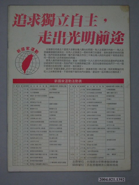 此為一紙質雜誌,此物件以相片為封面,本物件為1988年11月發行之《民進報》週刊第35期(總號第86號),封面內容計有〈新舊任主席交接典禮特別報導〉、〈堂堂進入第三年――兩位主席對民進黨的回顧與前瞻〉、〈中國大陸的對台政策變了嗎?〉等。目錄計有(一)社論、(1)從速解決中國體制和臺灣現實的抗爭、(二)焦點分析、(1)新舊任主席交接典禮特別報導、(2)「郝柏村總統」與「國家軍隊化」、(3)堂堂進入第三年-兩位主席對民進黨的回顧與前瞻、(3.1)民進黨要充分發揮黨的權威-黃信介的抱負、(3.2)民進黨是運動政黨不是選舉黨-姚嘉文的期待、(4)舉世側目郝總長-郝柏村到底惹出了多少體制問題、(三)亞洲觀察、(1)中國大陸的對台政策變了嗎?-評南方朔在「新新聞」的系列訪談報導、(四)漫畫、(1)魚夫版資治通鑑、(五)社會脈動、(1)勞工展示團結權、(2)重返議壇的捷徑-從議會到街頭、(六)文化認同、(1)被湮滅的臺灣文化史、(七)海外通訊、(1)放逐時代的告終 等。 此件為民進黨於1988年創辦的《民進報》周刊,為民主進步黨的機關刊物,前身為1987年2月開始發行的《民進報》,總主筆為民進黨內部派系「新潮流」重要成員林濁水。《民進報》之創辦,據刊物的卷頭語所言,此刊物為民主進步黨對「報禁」的挑戰。(民主進步黨文宣部,1987。)《民進報》於1988年由報紙轉型為雜誌,其內容主要為時政評論、介紹民進黨相關事務以及社會運動宣傳。