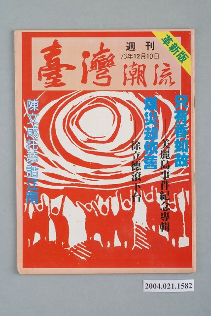 此為一紙質雜誌,在封面上方寫有本書標題、期號以及出版日期,並在封面刊有群眾的抽象插圖,另外節錄本刊物的部份內容,右上角標榜此期為革新版,背面則刊有介紹高雄並提及「美麗島」的文宣。此書為臺灣年代雜誌社1984年出版的《臺灣潮流》週刊革新版。 此件為《深耕》雜誌的衍生刊物之一,其最重要的發行人為許榮淑。《深耕》相較其他同時期的雜誌更富有批判性,亦更受社會矚目,其批判對象並不僅限於國民黨,連當時的黨外勢力也同時受其針砭。代表案例是其在1982年「杯葛事件」中針對「黨外主流派」妥協立場的批判。《深耕》成為黨外運動路線改變的原因之一,另外也造成黨外勢力的對立。 「黨外」一詞主要為非中國國民黨的臺灣政治勢力,而「黨外」政治勢力,主要的宣傳方式為「黨外雜誌」,「黨外雜誌」最早如1950年代的《自由中國》、1970年代的《大學》、《臺灣政論》,後在1980年代「黨外雜誌」發展蓬勃,代表刊物為《八十年代》與《美麗島》,最終,這股媒體趨勢在1986年民進黨成立、1987年解除戒嚴之後逐漸式微。「黨外雜誌」在當時激起了臺灣民眾的民主意識,也逐步促成了言論自由開放。(蕭淑玲,2006,153-155)。