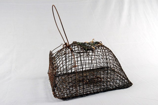 1.此為鐵製捕鼠籠,長約30公分,寬約20.6公分,高約25.6公分。器身呈長形蓬狀,前側立面為活動網門,網門勾住左右兩側獨立環形金屬線,此線之頂側圈一環形提把。後側為弧形立面,內側底面設有插銷機關,連動活動網門。整體多已鏽蝕。2.鼠害嚴重影響農業與環境衛生,傳統人家多放置捕鼠籠或夾鼠板解決鼠害。捕鼠籠使用時先把活動網門打開固定,在內側底面放置餌肉,當老鼠咬食餌肉時,插銷連動活動網門瞬間關上,老鼠便無法脫身。