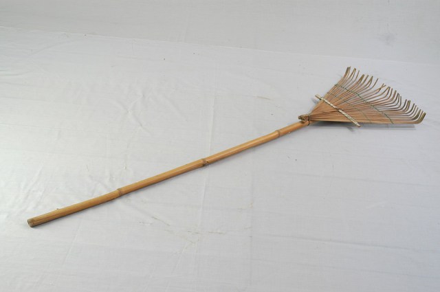 本物件為竹耙子,又稱「竹爪耙」、「竹齒耙」。有長柄,長柄底端散成十數條竹條,竹條頂端呈勾狀。竹耙子主要用於曬稻穀,用來翻攪稻穀,讓其能儘快曬乾。