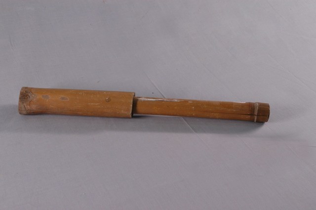 本物件為竹製有蓋針線收納筒,造型上蓋下筒,筒身為圓筒狀,主要收納各式長短針。