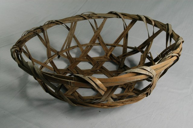 1.本物件為秧籃,為竹篾編成,形狀如臉盆,有污漬、灰塵。秧籃通常兩兩一組。 2.秧籃又稱「秧篦」,以竹片、篾編成,製作方法為以粗竹片1-2片圍成圓框,再以竹篾交叉編製。使用方式為農人以鏟子鏟起秧塊以便移植,疊放於秧籃上,插秧時則將秧籃置於秧船上。