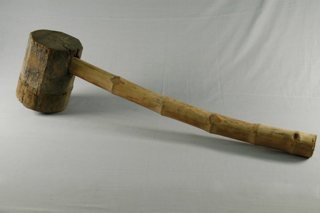 本物件為大木槌。槌柄為竹製,連接圓柱體形的槌體,槌體為木頭製。其主要與臼配合使用,用來搗穀物,將穀物搗成粉狀,可以製成米製品。