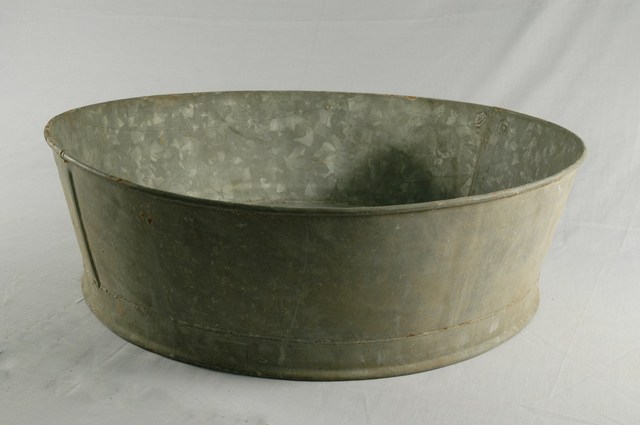 本文物為土桶,又稱拌合桶、泥漿桶,是土水司傅的工具。用來拌合水泥、砂、水,拌合好的糊狀物稱為水泥砂漿,用來抹壁、砌磚、鋪地磚等。本件土桶以鍍鋅鐵皮,即亞鉛製成,為亞鉛店所作。1960年代亞鉛土桶開始取代木製土桶,但至今仍有亞鉛店持續製作。根據購藏來源資料,本件文物來自臺北。