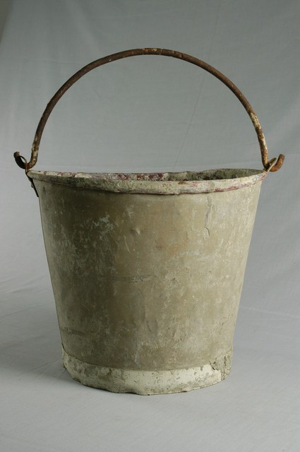 本文物為水桶,又稱提桶,是土水司傅的工具。用來盛裝或運送水、砂漿、土漿等液體或糊狀物,或移動乾的水泥粉或砂,或作為計量容器。水桶具提把,又稱提桶,為裝水用的容器,傳統上以木板製成。本件水桶以鋁製成,為工廠生產的大量工業製品。1980年代起大量生產至今,取代木桶及亞鉛桶材質。根據購藏來源資料,本件文物來自花蓮。