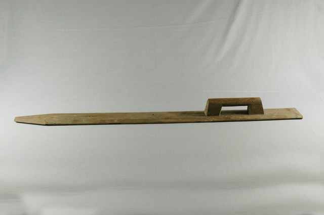 本件文物為木抹刀,土水匠師用來塗敷壁面表層灰漿時所用的工具,特色是以木片取代金屬刀面。本件刀面特別加長,用於整平長條面的灰漿,將金屬條與握把合一以木料製作,用以將表層質地較細的灰漿均勻推平。1980年代以後,木抹刀逐漸被海綿抹刀取代。