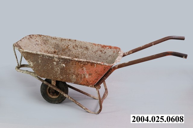 本文物為單輪推車,鐵製,為土水司傅的工具。為工廠生產製品,用來小規模搬運貨物,在現代營造工地中經常使用。土水司傅用以搬運乾料砂石或已攪拌均勻的灰漿。根據購藏來源資料,本件工具來自花蓮。
