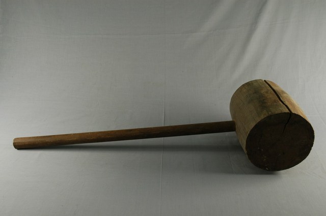 本文物為大木槌,為日本時代傳入的工具,於建造木柵欄立木樁時使用。大木槌的槌頭與槌柄皆為木製,槌柄微往下傾,打擊面為圓形。可能使用場合包括鐵道的木柵欄、日式建築院外的木柵圍籬,以及伐木的砍樹、集材作業時建造的棚架。根據購藏來源資料,本件工具來自屏東。