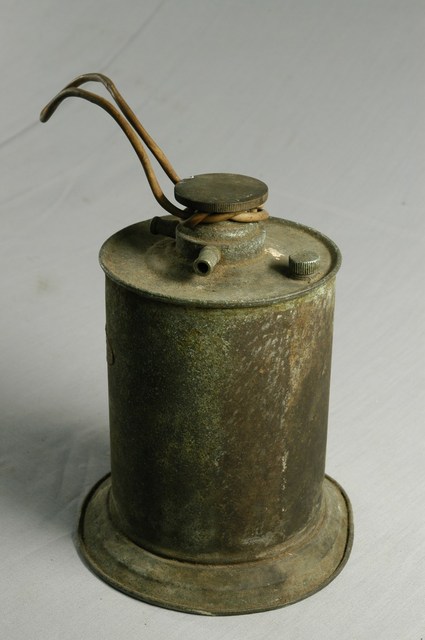 1.本物件為金銀細工所使用的焊接工具「油桶」,外觀呈圓筒狀,蓋上纏繞1條線狀提把,油桶上端有進氣孔、排氣孔及加油口,內裝焊接加熱所需燃料,可透過塑膠管分別與腳踏式風箱、火嘴連接使用。