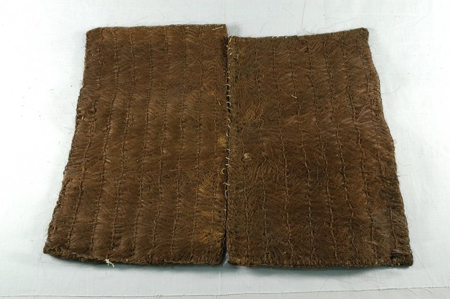 本物件為二片式縫合之棕色篩金網,網目細密幾無空隙,所篩選者應較一般更細緻。