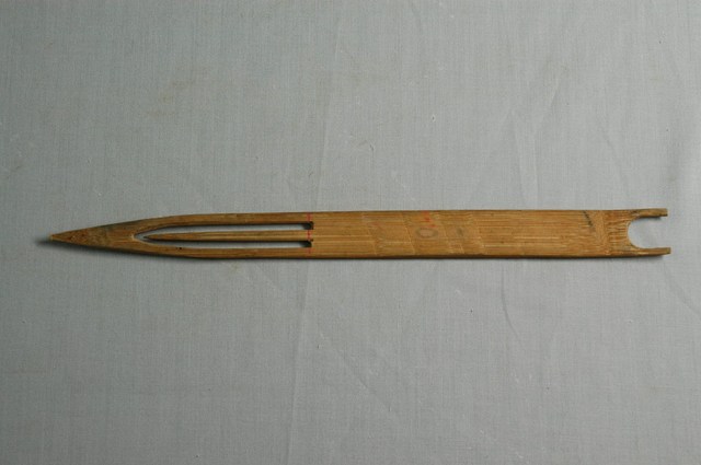 本物件為竹製漁網結網器,結網器為梭狀,除結網外亦作為修補漁網之用途,其材質有竹、木、鐵、銅、塑料,竹製為較常見,可略分為大號(約20-50cm,用來封漁網及修補粗線網)、小號(10cm以下,主要用來修補漁網)及介於其中的中號,中號由於大小適中,主要用來織各種漁網,結網器為織漁網的重要工具。