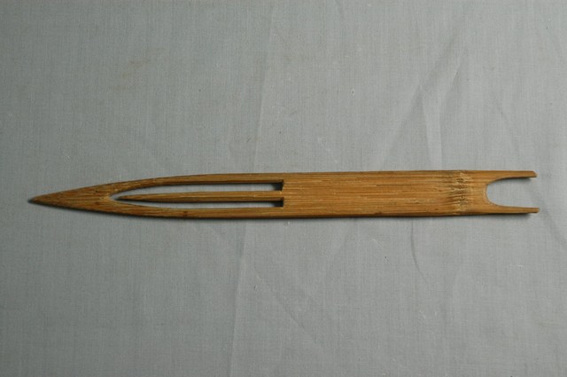 本物件為竹製漁網結網器,結網器為梭狀,除結網外亦作為修補漁網之用途,其材質有竹、木、鐵、銅、塑料,竹製為較常見,可略分為大號(約20-50cm,用來封漁網及修補粗線網)、小號(10cm以下,主要用來修補漁網)及介於其中的中號,中號由於大小適中,主要用來織各種漁網,結網器為織漁網的重要工具。