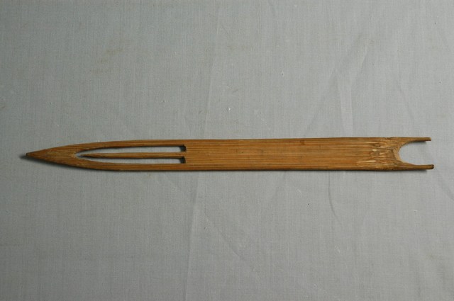 本物件為竹製漁網結網器,結網器為梭狀,除結網外亦作為修補漁網之用途,其材質有竹、木、鐵、銅、塑料,竹製為較常見,可略分為大號(約20-50cm,用來封漁網及修補粗線網)、小號(10cm以下,主要用來修補漁網)及介於其中的中號,中號由於大小適中,主要用來織各種漁網,結網器為織漁網的重要工具。