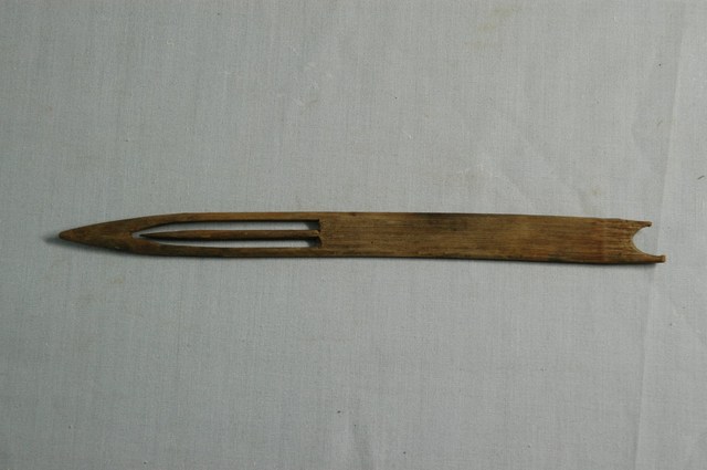 本物件為竹製漁網結網器,結網器為梭狀,除結網外亦作為修補漁網之用途,其材質有竹、木、鐵、銅、塑料,竹製為較常見,可略分為大號(約20-50cm,用來封漁網及修補粗線網)、小號(10cm以下,主要用來修補漁網)及介於其中的中號,中號由於大小適中,主要用來織各種漁網,結網器為織漁網的重要工具。
