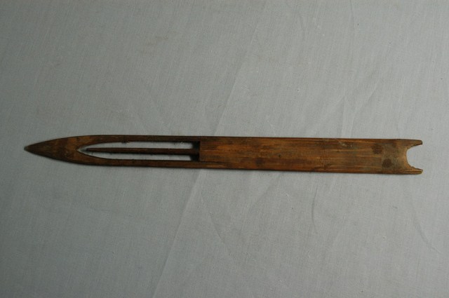 本物件為竹製漁網結網器,結網器為梭狀,除結網外亦作為修補漁網之用途,其材質有竹、木、鐵、銅、塑料,竹製為較常見,可略分為大號(約20-50cm,用來封漁網及修補粗線網)、小號(10cm以下,主要用來修補漁網)及介於其中的中號,中號由於大小適中,主要用來織各種漁網,結網器為織漁網的重要工具。