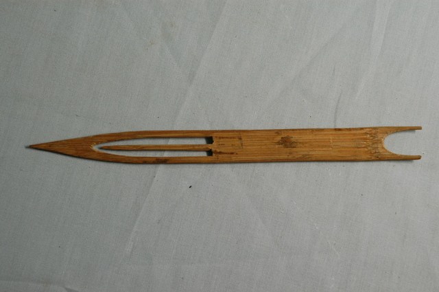 本物件為竹製漁網結網器,結網器為梭狀,除結網外亦作為修補漁網之用途,其材質有竹、木、鐵、銅、塑料,竹製為較常見,可略分為大號(約20-50cm,用來封漁網及修補粗線網)、小號(10cm以下,主要用來修補漁網)及介於其中的中號,中號由於大小適中,主要用來織各種漁網,結網器為織漁網的重要工具。