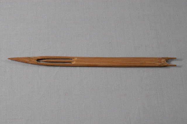 本物件為竹製漁網結網器,結網器為梭狀,除結網外亦作為修補漁網之用途,其材質有竹、木、鐵、銅、塑料,竹製為較常見,可略分為大號(約20-50cm,用來封漁網及修補粗線網)、小號(10cm以下,主要用來修補漁網)及介於其中的中號,中號由於大小適中,主要用來織各種漁網,結網器為織漁網的重要工具。