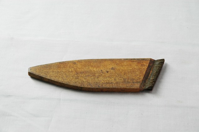 本物件為製鞋、修鞋所使用的木製刷具,後方把手為扁平三角狀的木柄,刷具前端有短刷毛。刷具是鞋匠用來為鞋子上膠或上色所使用。