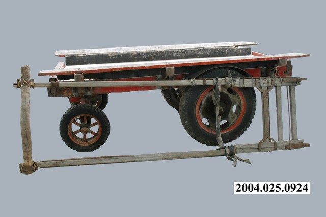 2.自明鄭末葉(1671-1683)起,板輪牛車在臺灣的使用已很盛行,最早期用的是板輪牛車,後演變為鐵輪牛車、塑膠輪牛車。主要為農業用途,如運送甘蔗、稻穀、雜糧,此外亦包括日常生活交通、運送建材等。