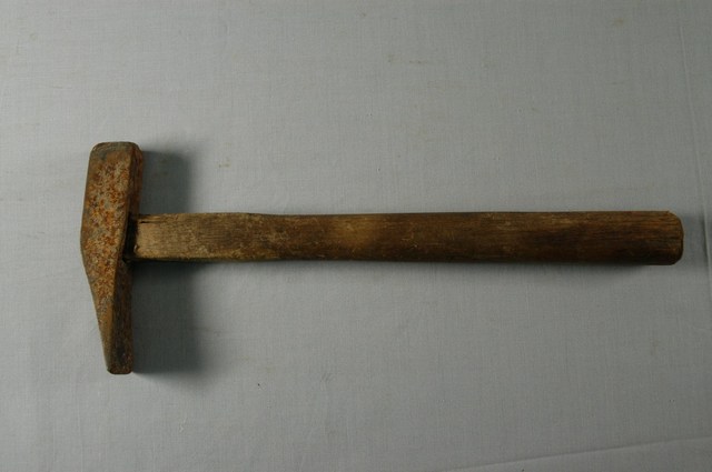本文物為鐵鎚,一端為鎚面,用於敲擊,另一端為平鑿形,用於破壞或拔釘。鎚面小,方形,主要為敲打鐵釘的工具。為營造司傅的工具,木工、鐵工、土水等皆適用。一般家庭修繕亦使用之。根據購藏來源資料,本件工具來自屏東。
