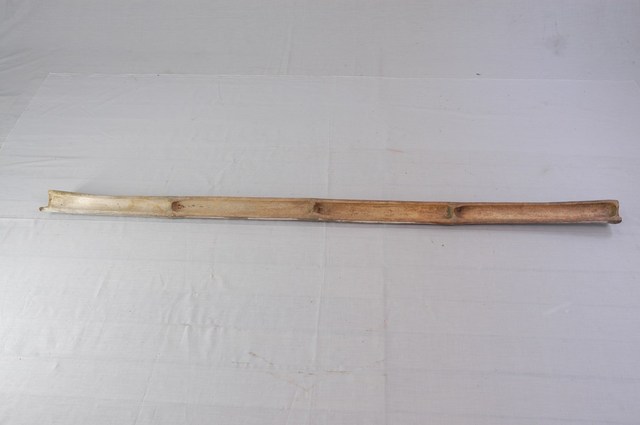 1.本物件為用竹子做的長而扁的物品,中間寬兩端窄,有些扁擔是兩端向上彎翹的。 2.用途:扁擔通常是肩膀擔東西時使用的工具。使用時,可將所擔物件繫上繩子掛在扁擔兩端,或在扁擔兩端掛上兩個筐,將物品置於筐中。