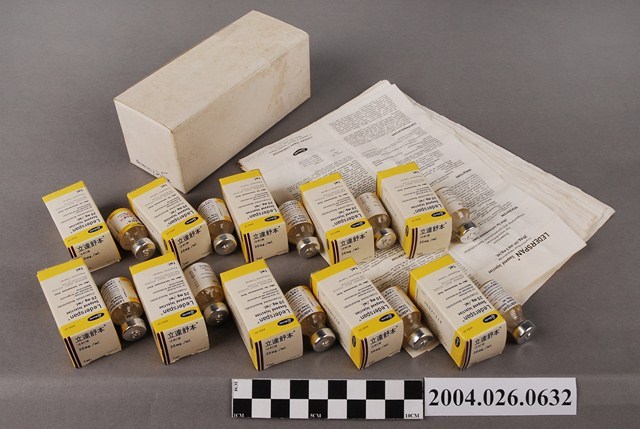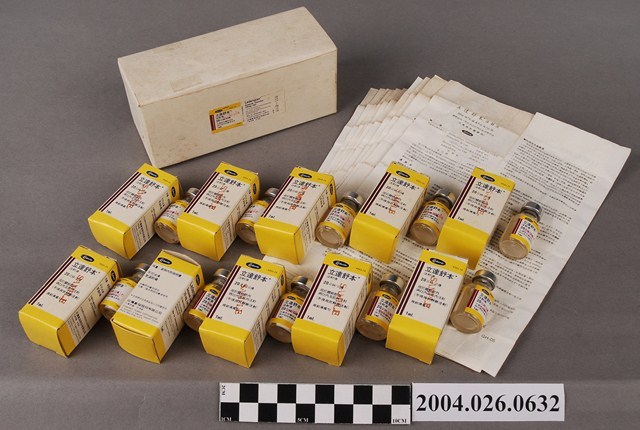 1. 本物件為臺灣氰胺股份有限公司出品立達舒本注射液。共有2種物品,分別為包裝外盒和注射液。