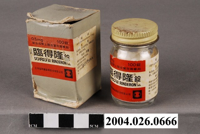 2.西元1878年塩野義三郎在大阪中央區道修町開店創業,販賣經銷日本與漢方藥品,西元1923年該公司決定在臺灣銷售藥品,西元1963年創設臺灣分公司。臨得隆釘衛署藥製字第045967號,其適應症涵蓋原發性腎上腺皮質機能不全症(安迪生氏病)、風濕熱、關節風濕症、全身性紅斑狼瘡、支氣管氣喘、腎病、溼疹、皮膚炎、藥疹。