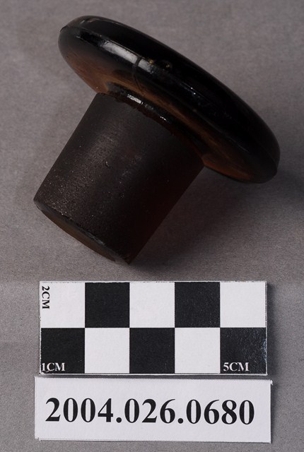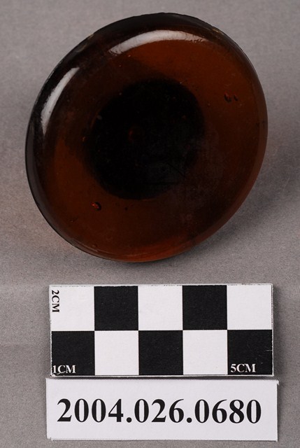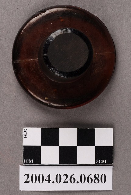 本物件為玻璃蓋,細口瓶蓋,茶色玻璃材質。
