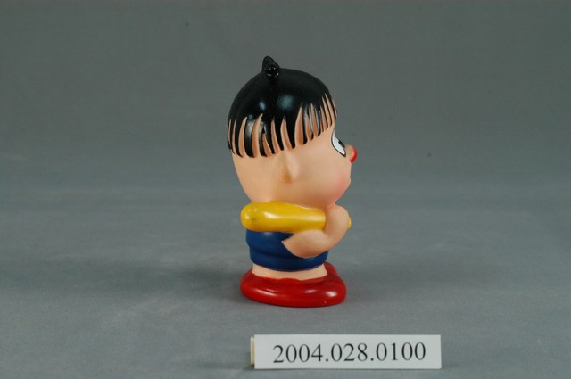 1.此物件為可口脆迪酥企業娃娃小呆瓜娃娃,身穿藍衣與藍褲,繫有紅色領巾,穿紅色鞋,左手拎著球棒於左肩上,右手比出「讚」姿勢,紅鼻,髮型為呆瓜頭。