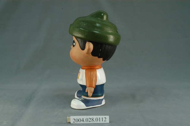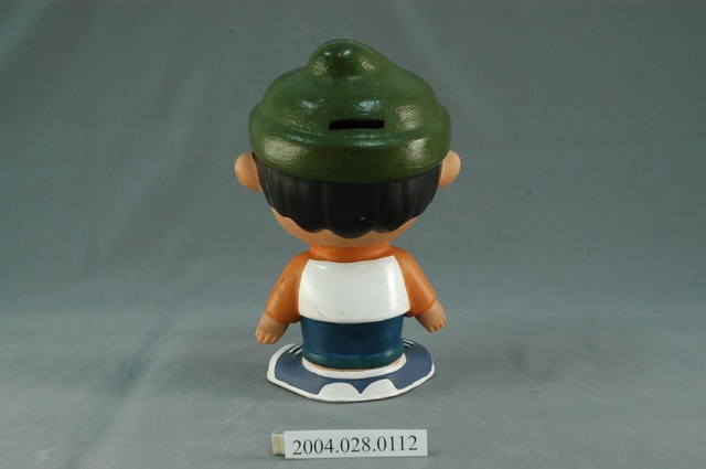 此為一存錢筒公仔,公仔身著橘色的長袖T恤、牛仔褲,頭戴綠色扁帽,T恤則寫有「520」的字樣,扁帽上則有「A-BIAN FAMILY」的字樣。此為2000年製造的「a-Bian(阿扁)」紀念存錢筒公仔。 此物件為臺灣2000年的第10任總統選舉相關商品,此次選舉為臺灣自1996年後第二次由全民直接參與投票的總統、副總統選舉。此次選舉中,中國國民黨的代表為連戰、蕭萬長,民主進步黨的代表為陳水扁、呂秀蓮,另有從國民黨脫黨參選的宋楚瑜、張昭雄,從民進黨脫黨參選的許信良、朱惠良,新黨也於此次選舉派出李敖、馮滬祥參選,此次選舉陳水扁及呂秀蓮當選,造成臺灣歷史上第一次的政黨輪替。