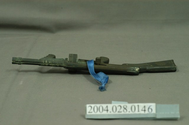 2.民國50年代(1960)時,市面上有許多鐵皮製的玩具,如機器人、太空船、玩具車等等,甚至還有各式的武器,如刀、劍、長槍短槍,讓好動的男孩子大玩角色扮演,拿著槍與武器與同伴追逐鬥勝。廠商所推出的射擊玩具,在時代的演進下,除了彈弓、筷子槍以外,也推出了金屬製的「紙炮鐵槍」,這種射擊玩具雖然無法發出子彈,但卻可以敲擊出射擊時的聲響,大受孩子的歡迎,成為了五、六年級生兒時的重要回憶。