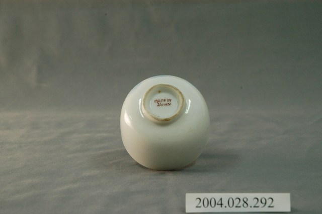 1.本物件為日式花紋小瓷杯,這個杯子大約7.3公分大小,高約4.8公分,除了杯子本身之外,並無附有茶杯蓋,杯身上僅有一些紋繪,這個紋繪主要以金魚當作繪製重點,一隻紅色一隻黑色,旁邊還有綠色水草點綴,整體瓷杯屬於敞口短圈足式。小瓷杯本身保存良好,以白瓷為基底,杯底還有「MADE IN JAPAN」。