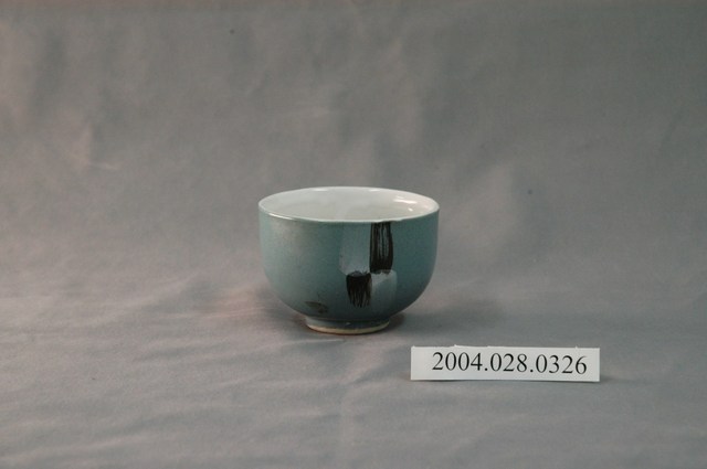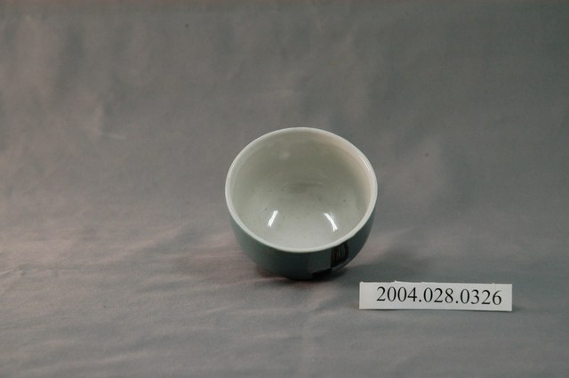 1.本文物為臺中縣清水鎮農會贈小瓷杯,這個杯子大約7.5公分大小,高5.2公分,除了杯子本身之外,並未附有茶杯蓋,杯身上有紅文字「清水鎮農會贈 臺中縣」,圖像則是用藍綠色佈滿整著個瓷杯,並有棕色與白色的花紋,內裡維持白色,整體瓷杯屬於敞口短圈足式。小瓷杯本身保存良好,屬白瓷。