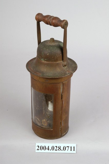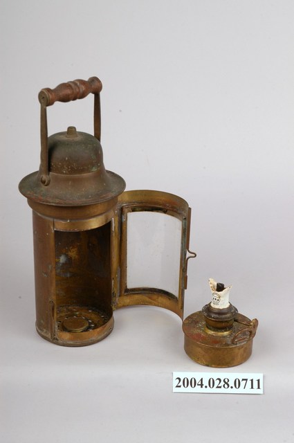 1本件 Sherwood Ltd Linley製銅質手提煤油燈可分為手提燈罩與煤油壺2部件,主要材質使用銅合金製作,呈紅銅色澤。手提燈罩中空圓柱形,上蓋鐘形頂蓋,並帶有提樑式手把。正面作直式長方形絞鍊門,並裝設有透明玻璃透光。該煤油燈具有防風效果,可於夜間戶外使用,頂端帶有把手方便提拿照明。2.臺灣在電器燈具尚未普及之前,多使用煤油燈具作為夜間室內照明。煤油在臺灣又稱臭油或番仔油,為當時最為經濟的照明燃料,普遍可在雜貨店購買,其缺點為燃燒時產生的黑煙與臭味。