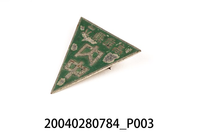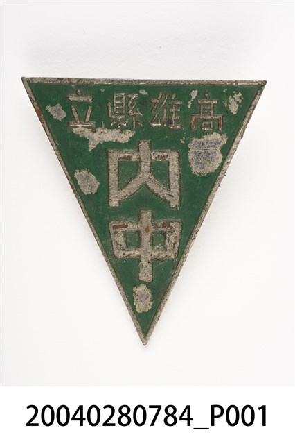 本文物屬於高雄縣立內門國中,該校民國50年成立,稱「旗山中學內門初期分部」,民國54年改制為高雄縣立內門初級中學,民國57年更名為「高雄縣立內門國民中學」,現今名為「高雄市立內門國民中學」。此牌為教職員學生制服上的徽章,徽章文字「高雄縣立內中」。