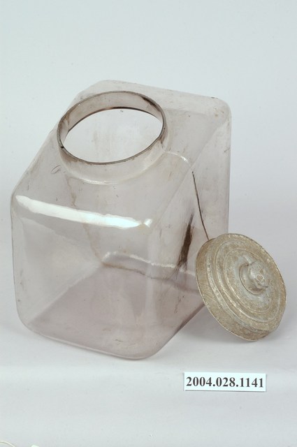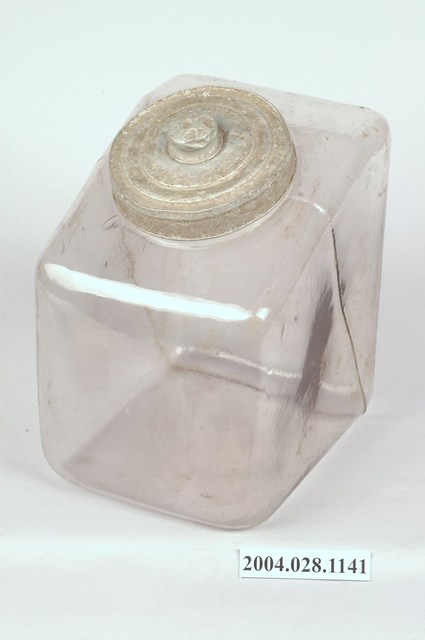 2.玻璃糖果罐是日治至戰後時期常見的民生器具,不管是販賣部或是一般民眾家中均有玻璃糖果罐的蹤跡。玻璃糖果罐通常均有頸短、大口的特色,利於抓取內容物,並採用合金或薄金屬製成的蓋,採直接蓋上密合的方式,方便人們取用。玻璃糖果罐因相較於傳統陶、瓷容器更為輕巧美觀,時常被用於存放餅乾、糖果或醃漬物。