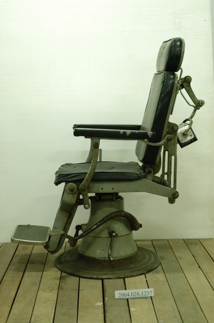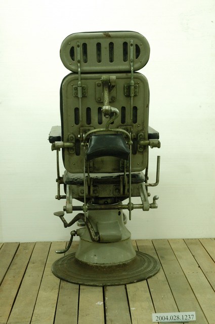 本物件為看診椅。主體為鐵製,坐墊、背墊、頭墊和扶手則裝有外層包塑膠皮革的海綿。看診椅底座為圓盤狀,椅子有腳踏墊,供病人踩踏,上下看診椅。