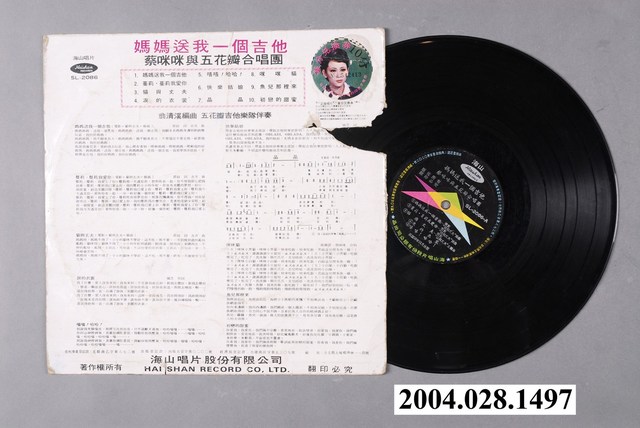 海山唱片公司出品編號「SL-2086」華語歌曲專輯《媽媽送我一個吉他》,翁清溪編曲,「蔡咪咪與五花瓣合唱團」演唱,1969年11月出版。
