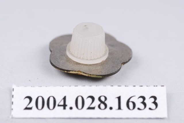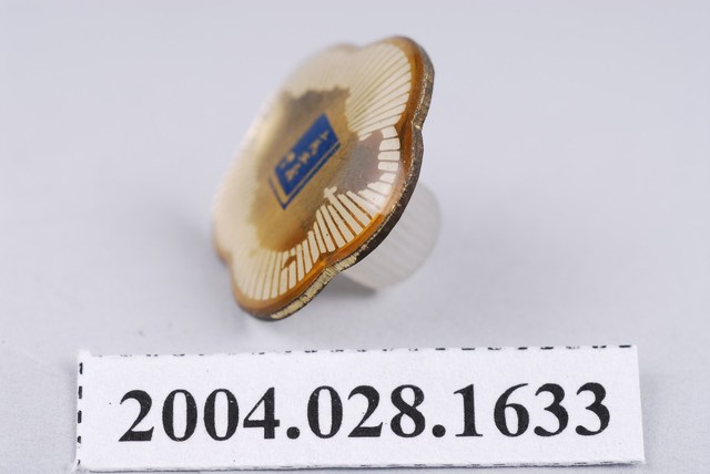 一、此物件為紀念章,輪廓為代表中華民國的國花「梅花」的形狀,底面圖樣為燙金印製的中國大陸輪廓加上臺灣,中央為一本藍色書冊,上有「三民主義∕孫文」字樣。