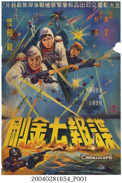 1964-1968年間,臺灣電影界大量拍製臺語間諜片,本館典藏多部同類型的臺語諜報片,包括《艷諜三盲女》、《金蝴蝶》、《第三號反間諜續集》等海報可做比較。