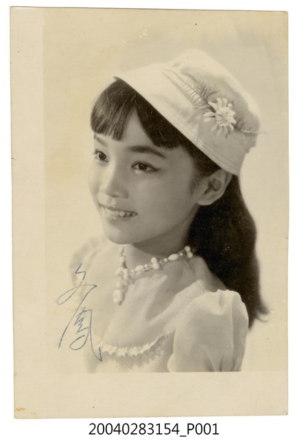 1.臺灣歌手文夏與四姊妹團員之一,文鳳半身黑白獨照,直式單面,為文夏的學生,後與文夏組成團體,此張照片側身面對左方面露燦爛微笑,身穿蕾絲洋裝,頭戴圓帽,帶著珍珠款項鍊,照片左下方版面處則有淺淺的藍色親筆簽名,左下方角落則有黃色污點,大抵狀況良好,背面左下方則有一模糊藍筆蓋印,中間則有兩個紅色蓋印,其中一個模糊,上方則是清楚的「葉金伸印」。2.文鳳自小跟文夏學習音樂,於後期加入文夏與四姐妹團體(一開始為三姐妹),後推出多首膾炙人口的臺語歌曲,同文雀一樣結婚後即退出歌壇。