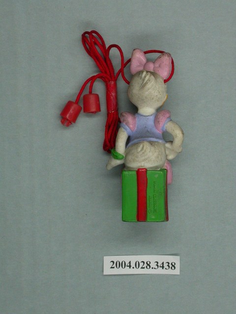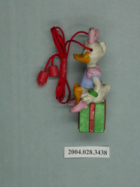 1.本文物為塑膠筆套,外形為迪士尼卡通黛絲鴨,該文物使用方式為套在筆桿一端,作為裝飾及平衡之用背後可見版權符號與文字© 「DISNEY SUNKISSED HAWAII」商標的浮雕字體。2.華特迪士尼公司(The Walt Disney Company)設立於1923年,初期名稱為「迪士尼兄弟卡通工作室」,該工作室主要以發展電影動畫製作為主,後期亦開始著手電視、主題公園等多角化經營。