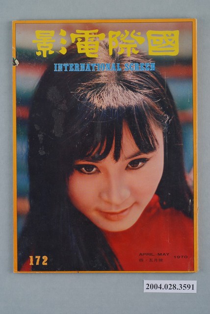 1.本物件為國際電影雜誌第172期。正面可見「國際電影」、「APRIL MAY」、「1970」、「四 五月號」、「INTERNATIONAL SCREEN」、「172」字樣,封面為譚伊俐。目錄頁可見篇章「張淇樣樣都好」、「秦芸片運亨通」等等。