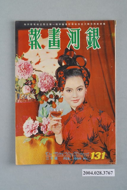 本文物為銀河畫報雜誌第一三一期,發行者為銀河畫報社,出版日期為民國五十八年二月。封面上印「暢銷東南亞圖文並茂報導影壇秘辛唯一獨立性正統電影刊物」、「銀河畫報」,下方印「The Milky Way Pictorial」、「二月號 FEB., 1969 NO.131」。封面人物為虞慧,其於頭上盤髻,並綴以喜氣的紅色飾帶,著大紅竹葉紋旗袍,手持酒杯。左側有牡丹花盆景。背面為精工錶之宣傳廣告。目錄頁上方為三位藝人賀年照,下方目錄則包含「三笑緣順利關鍵 拒演消息實誤傳」、「彩色挿樓:凌波飾演唐伯虎(李文攝)」、「彩色挿頁:沈依(賀師曠攝)」等29則報導。版權頁上及右方為廣告,左方為版權相關資訊。