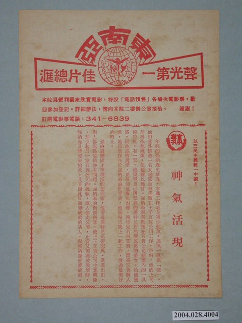 1.臺北東南亞戲院約於1987年提供觀眾的電影本事,雙面印刷。一面為美國片《神氣活現》(Mannequin)的電影本事,該片描述一位在百貨公司工作的年輕男子,與櫥窗裡一具假模特兒談情說愛並激發創作潛力的故事,是一部浪漫幻想喜劇。另面則是下期上映的法國片《聖女小德蘭》(Thérèse)的電影劇照及文案廣告,該片改編自《一朵小白花》暢銷傳記,榮獲坎城影展、紐約影展等多個獎項,是一部描述純潔虔誠的修道女小德蘭奉獻上帝的故事。