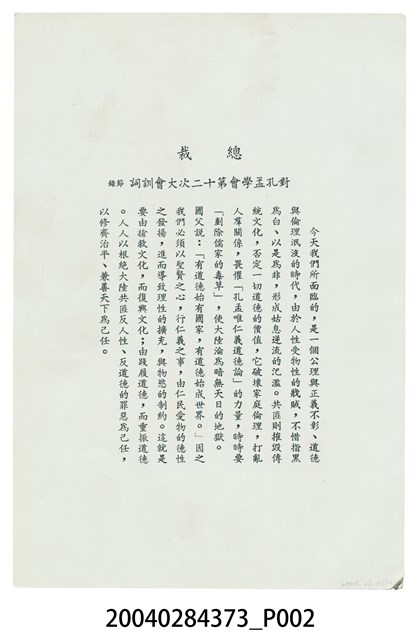 秦孝儀主編,1984。總統蔣公思想言論總集第二十一卷,中國國民黨中央委員會黨史委員會,頁:386-388。