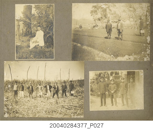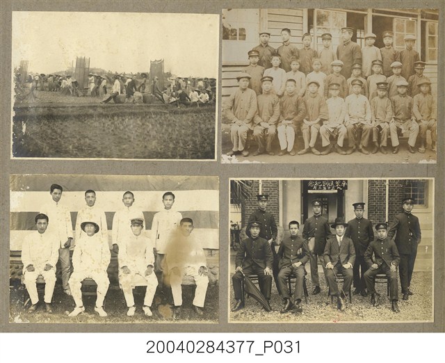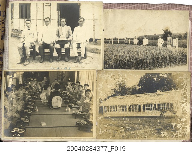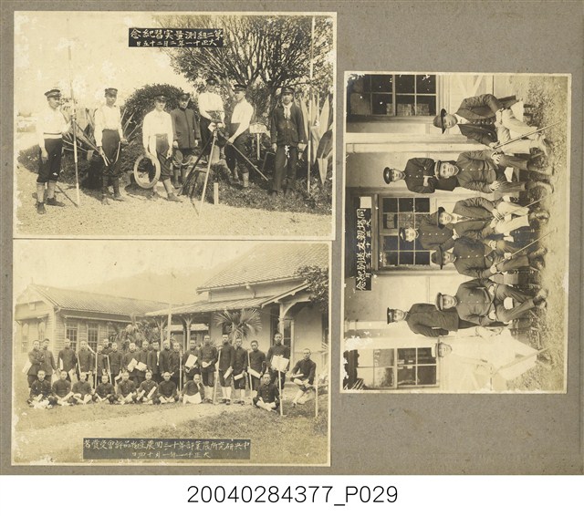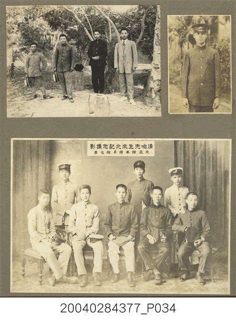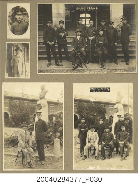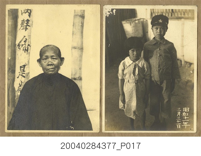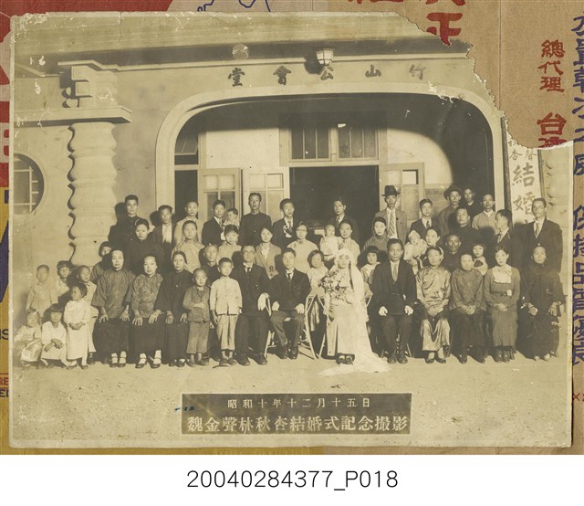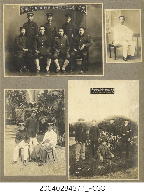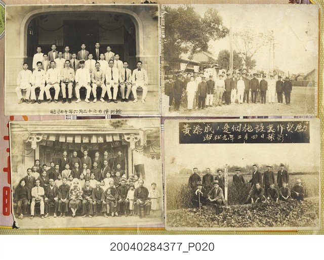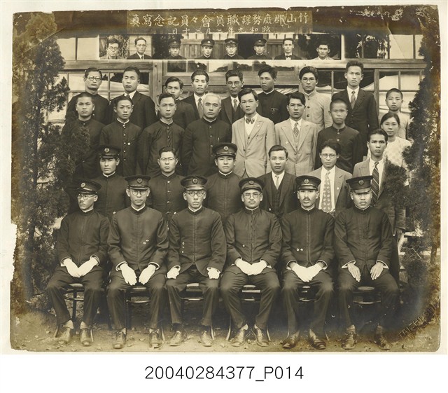 1.本物件為1本相簿,封套的物件名稱寫著「寫真帖:竹山郡」,此寫真帖內計89張原稿照片,封面以紅色為主題,上面有3朵花的照片,用1個圓形框住,旁邊則有義美食品公司的商標,左邊裝訂的位置還有橫向書寫了「情愛」2字,以線裝訂。照片的年代以日治時期為主,最早可追溯至大正年間,有家族合照、個人照、一般家庭生活照、還有畢業紀念照、講習會合照、嚴肅的集體合照,還有喪禮會場的照片等。由紀念照的文字內容推斷,參加的活動或是唸書的地區,位於竹山,應為此地出生的家族。大部分皆著西服居多,部分有漢人傳統服飾或軍裝。相本的封底沒有顏色也沒有圖案,但泛黃情況嚴重。